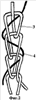 Поперечные связи 2 состоят из одной, двух или трех одинарных нитей 5, составляющих петельную структуру жгута.