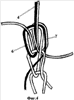 9. Способ по п.7, отличающийся тем, что две трикотажные закрепляющие петли образуют в жгуте совмещенными.
