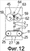 фиг.10, 11 и 12 – увеличенные виды соответственно сбоку, сверху и спереди схем действия части устройства на фиг.3-5,