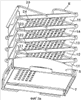 Преимущественно, полки могут иметь края, образующие угол с плоскостью полки. Причем края выполнены с отверстиями, через которые проходят стержни. Предпочтительно, края могут быть, по существу, перпендикулярными плоскости полки.