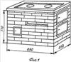 В предлагаемом способе приготовления шашлыка используются простые кухонные плиты или отопительно-варочные печи В.А.Потапова (фиг.1, 2) (Шепелев A.M. Кладка печей своими руками. – М.: Россельхозиздат, 1983. – 205 с.). Для приготовления шашлыка в этих печках увеличивают объемы камеры поддувала (фиг.3, 4, поддувало 1) до объемов топливника (фиг.3, 4, топливник 2) за счет разделения камер топливника и поддувала тремя колосниковыми решетками (фиг.3, 4, решетка 3), уложенными на шестой ряд кирпичной кладки, выдвинутой во внутрь печи над камерой поддувала.