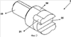 Показанная на фиг.2 цапфа (2) непосредственно соединена с сиденьем и крышкой унитаза, вставленной без какого бы то ни было поворота в отверстие обоймы демпфера и цапфы (12) и одним концом соединенной с демпфером (3). Цапфа (2) состоит из вала (23) круглого поперечного сечения, соединенного с сиденьем и крышкой; расположенного на одном конце вала цапфы (23) имеющего круглое поперечное сечение тела цапфы (24), коаксиального с валом (23) и находящегося в отверстии обоймы демпфера и цапфы (12); одного или большего числа выступов цапфы (21), расположенных на одном конце этого тела (24) на внешней его (24) круглой поверхности и входящих в пазы для этих выступов (13); прорези прямоугольного сечения (22) на плоской поверхности тела цапфы (24), параллельного этой поверхности, на стороне, где располагаются выступы цапфы (21).