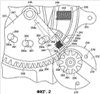Кроме того, приводная зубчатая передача 247 включает ограничительную пластинчатую часть 257 в виде первого элемента передачи, установленную как единое целое с осью 246 привода, основную зубчатую часть 258 привода, в виде второго элемента передачи, расположенную сзади от ограничительной пластинчатой части 257, и направляющую часть 259, установленную как единое целое с основной зубчатой частью 258 привода.