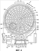 Круглая часть 175 сформирована в углубленной конфигурации и проходит спереди назад, и в центральной ее части расположена приблизительно столбчатая опорная ось 178, выступающая вперед. Круглая в форме пластины вращающаяся часть 179 удерживается в осевом направлении и с возможностью вращения опорной осью 178. Кроме того, в нижней части в приблизительно боковом центре круглой части 175 непрерывно сформирована выступающая углубленная часть 181, выступающая вниз по поверхности 176 воздушной перегородки. Кроме того, с нижней левой стороны от опорной оси 178 круглой части 175 на Фиг.4 выполнено круглое соединительное отверстие 182, сообщающееся с всасывающей стороной электрического вентилятора 5. Кроме того, на задней поверхности, то есть задней стороне круглой части 175, то есть на стороне камеры 6 электрического вентилятора расположены сформированные в радиальном направлении и концентрично ребра 183 жесткости и множество столбчатых выступов 184 для соединения воздушного прохода 172 разделительной перегородки и центральной части 171 разделительной перегородки.