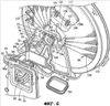 Кроме того, сформировано переключающее средство C для переключения между основным и вспомогательным воздушными проходами W1 и W2 в соответствии с направлением вращения электродвигателя 271 с использованием, например, вращающегося элемента 27, первого открывающегося/закрывающегося клапана 66, соединительного механизма 70, клапана 222 для открывания/закрывания соединительного отверстия, второго открывающегося/закрывающегося клапана 235, приводной зубчатой передачи 247 и вращающегося зубчатого колеса 284. То есть вращающийся элемент 27 формирует также часть переключающего средства C.