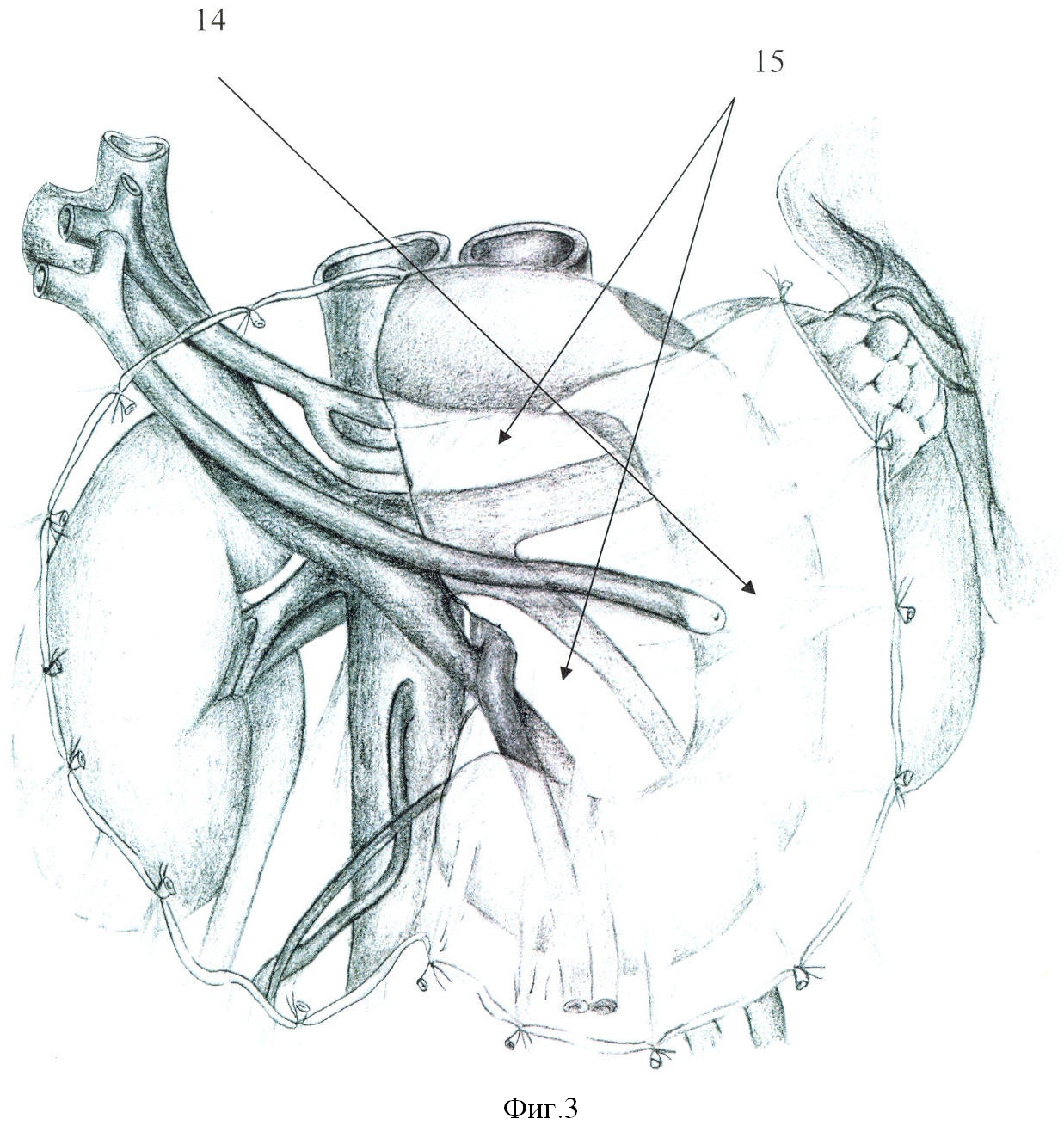 Б. Способ, предложенный В.Н.Круцяк и соавт. («Способ дислокации илеоцекального отдела кишечника и восходящей ободочной кишки» В.Н.Круцяк, А.Я.Яремчук, А.И.Пойда, В.Н.Ватаман, И.А.Винниченко, авторское свидетельство №1291131, кл. А61В 17/00, 1987). Сущность данного способа заключается в резекции ободочной кишки с мобилизацией слепой и восходящей ободочной кишок путем рассечения париетальной брюшины по латеральному краю и отделения ее от подлежащей клетчатки, поворот восходящей кишки и илеоцекального отдела кишечника во фронтальной плоскости против хода часовой стрелки и перемещения кишки в полость малого таза. При этом с целью предупреждения перегиба сосудов и связанных с этим нарушений кровоснабжения низводимой кишки мобилизуют дистальную часть подвздошной кишки путем рассечения париетальной брюшины у корня ее брыжейки до места отхождения подвздошно-ободочной артерии от верхней брыжеечной артерии.