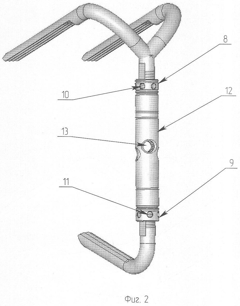 Устройство для осуществления способов лечения переломов хирургической шейки плечевой кости включает (фиг.1) фиксирующий элемент 1, выполненный в виде рогатки под углом 85-90° с загнутыми в виде металлических крючков и удлиненными концами полуцилиндрической формы. В месте соединения рогатка переходит в стержень цилиндрической формы, который имеет резьбу. Фиксирующий элемент 2 для дистального отдела выполнен в виде металлического крючка с удлиненным концом полуцилиндрической формы, другой конец которого выполнен в виде стержня цилиндрической формы с резьбой. Стержни с резьбой обоих фиксирующих элементов имеют одинаковый диаметр и длину резьбовой части. На конце резьбы стержни имеют площадки 3 и 4 под фиксирующий ключ. Все крючки фиксирующих элементов изогнуты под углом 70-75°. Плоские части 5, 6, 7 всех полуцилиндрических крючков имеют продольные рифления. Цилиндрические стержни с резьбой имеют на концах цилиндрические контргайки 8 и 9 (фиг.2) с отверстиями 10 и 11 под ключ. Цилиндрические стержни с резьбой фиксирующих элементов соединены втулкой 12 с внутренней резьбой, которая имеет несколько отверстий 13 для ее закручивания. Втулка обеспечивает стягивающую функцию устройства. Все детали устройства выполнены из стали.