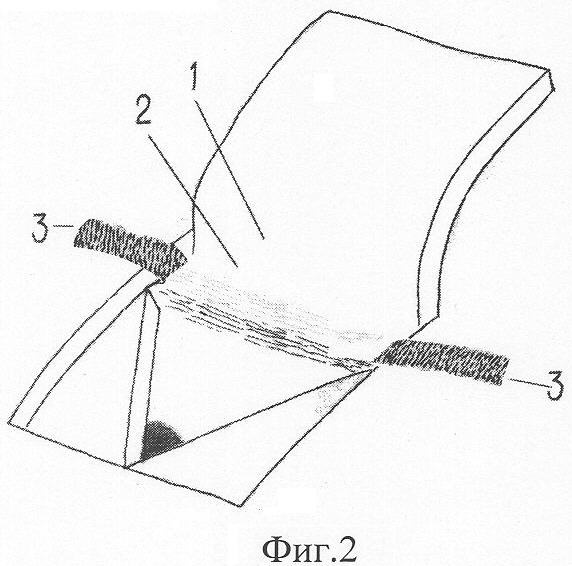 Предлагаемое изобретение поясняется чертежами. На фиг.1 показан момент до отсепаровки юкстаканаликулярной ткани, где 1 – поверхностный склеральный лоскут, 2 – десцеметова мембрана, 3 – юкстаканаликулярная ткань. На фиг.2 показан момент после отсепаровки юкстаканаликулярной ткани, где 1 – поверхностный склеральный лоскут, 2 – десцеметова мембрана, 3 – юкстаканаликулярная ткань после отсепаровки (фитиль-дренаж).