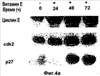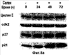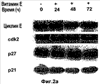 Регуляторы клеточного цикла во время его прекращения в клетках LNCaP с помощью сочетания витамина Е и селена. После экспонирования из культуральной среды клетки собирают с разными временными интервалами. Получают лизаты и подвергают их фракционированию в SDS-PAGE. Белки детектируют путем иммуноблоттинга с помощью индикаторных антител. Отмечена повышающая регуляция р27.