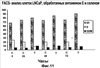 Асинхронно растущие клетки, обработанные или необработанные витамином Е или селеном, в течение 2 часов метят радиоактивной меткой с помощью 10 мМ бромдезоксиуридина (BrdU). Затем клетки собирают, фиксируют 70% этанолом, обрабатывают 0,1% HCl и нагревают в течение 10 мин при 90°С с получением меченой ДНК. Клетки окрашивают анти-BrdU конъюгированным FITC (Becton-Dickinson) и обратно окрашивают радиоактивным пропидиййодидом. Анализ клеточного цикла осуществляют в Becton-Dickinson FACScan с использованием программы Lysis II.