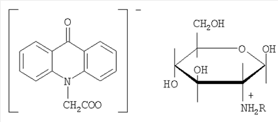 9-оксоакридин-10-уксусная кислота, как и многие органические кислоты, может образовывать соли с основаниями.