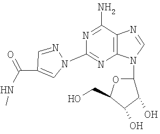 CLASS=”b560m”adenosine in conscious dogs.”, J Pharmacol Exp Ther. 2003 Oct; 307(1): 182-9. Epub 2003 Sep 3. Trochu JN et. al. “Selective A2A adenosine receptor agonist as a coronary vasodilator in conscious dogs: potential for use in myocardial perfusion imaging.” J Cardiovasc Pharmacol. 2003 Jan; 41(1): 132-9. US 6026317 A, 15.02.2000. RU 2204415 C2, 20.05.2003.