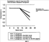 Кривая выживаемости представлена на фигуре 7. Из фигуры ясно, что приблизительно через 12 часов после хирургического вмешательства мыши, получавшие P.aeruginosa и физиологический раствор, начинали проявлять относительно резкое снижение выживаемости, так как процент выживаемости снижался от 100% через приблизительно 12 часов после хирургического вмешательства до приблизительно 35% через 24 часа после хирургического вмешательства. Мыши, которым вводили либо ПЭГ 8000, либо ПЭГ 1520 кДа, демонстрировали менее резкое снижение с процентом выживаемости, снижающимся от 100% через приблизительно 12 часов до приблизительно 50% через 24 часа после хирургического вмешательства. У мышей, которым вводили ПЭГ 15100, был показан процент выживаемости, который снижался менее всего, т.е. от 100% через 12 часов до приблизительно 75% через 24 часа после хирургического вмешательства.