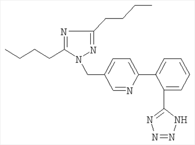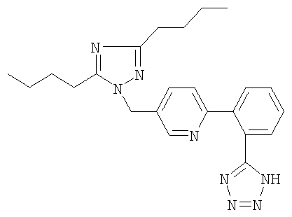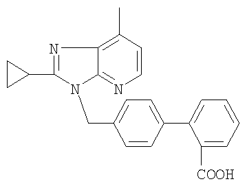 соединение, обозначенное как SC-52458, которое имеет следующую формулу и соединение, обозначенное как ZD-8731, которое имеет следующую формулу или в каждом случае их фармацевтически приемлемые соли. Предпочтительными антагонистами AT1-рецептора являются агенты, которые имеются в продаже, наиболее предпочтительным является валсартан или его фармацевтически приемлемая соль. Ингибиторы HMG-CoA-редуктазы (которые называют также ингибиторами Класс ингибиторов HMG-CoA-редуктазы включает соединения, имеющие различные структурные особенности. Следует отметить, например, соединения из группы, включающей аторвастатин, церивастатин, компактин, далвастатин, дигидрокомпактин, флуиндостатин, флувастатин, ловастатин, питавастатин, мевастатин, правастатин, ривастатин, симвастатин и велостатин или в каждом случае их фармацевтически приемлемые соли. Предпочтительными ингибиторами HMG-CoA-редуктазы являются агенты, которые имеются в продаже, наиболее предпочтительными являются флувастатин и питавастатин, а также аторвастатин или в каждом случае их фармацевтически приемлемые соли. Применение так называемых ингибиторов АСЕ (ингибиторы ангиотензинпревращающего фермента) для прекращения ферментативного расщепления ангиотензина I, в результате которого происходит образование ангиотензина II, представляет собой перспективный подход к проблеме регулирования кровяного давления и позволяет также разработать пригодный для практического применения терапевтический метод лечения застойной сердечной недостаточности. Класс ингибиторов АСЕ включает соединения, имеющие различные структурные особенности. Следует отметить, например, соединения из группы, включающей алацеприл, беназеприл, беназеприлат, каптоприл, церонаприл, цилазаприл, делаприл, эналаприл, эналаприлат, фосиноприл, имидаприл, лизиноприл, мовелтоприл, периндоприл, хинаприл, рамиприл, спираприл, темокаприл и трандолаприл, или в каждом случае их фармацевтически приемлемые соли. Предпочтительными ингибиторами АСЕ являются агенты, которые имеются в продаже, наиболее предпочтительными являются беназеприл и эналаприл. Класс блокаторов кальциевых каналов (БКК) в основном состоит из дигидропиридинов (ДГП) и соединений, не относящихся к ДГП, таких как БКК типа дилтиазема и типа верапамила. В качестве БКК, которые можно применять в комбинации, предпочтительно выбирают ДГП из ряда, включающего амлодипин, фелодипин, риосидин, исрадипин, лацидипин, никардипин, нифедипин, нигулдипин, нилудипин, нимодипин, нисолдипин, нитрендипин и нивалдипин, а представителей соединений, не относящихся к ДГП, предпочтительно выбирают из ряда, включающего флунаризин, прениламин, дилтиазем, фендилин, галлопамил, мибефрадил, анипамил, тиапамил и верапамил и в каждом случае их фармацевтически приемлемые соли. Все такие БКК можно применять в терапевтических целях, например, в качестве гипотензивных лекарственных средств, средств от стенокардии или антиаритмических лекарственных средств. Предпочтительными БКК являются амлопидин, дилтиазем, исрадипин, никардипин, нифедипин, нимодипин, низолдипин, нитрендипин и верапамил или в зависимости от конкретного БКК их фармацевтически приемлемые соли. Наиболее предпочтительным ДГП является амлодипин или его фармацевтически приемлемая соль, прежде всего бесилат. Наибо