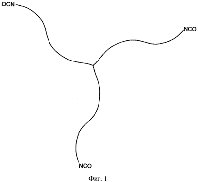 Фигура 1 иллюстрирует общую структуру форполимера, кэпированного изоцианатом, в соответствии с настоящим изобретением.