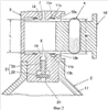 Кроме того, расстояние L между переходным каналом 7 со стороны сопла и переходным каналом 8 со стороны насоса, служащее для установки капсулы 4 с отверстиями 5, 6, каждое из которых выполняется заданного диаметра путем отсечения обоих концов капсулы режущими лезвиями 11а, 11b, меньше расстояния М между остриями режущих лезвий 11а и 11b, служащих для отсечения обоих концов капсулы 4. То есть расстояние L между переходными каналами 7 и 8 короче капсулы 4 после отсечения обоих концов капсулы режущими лезвиями 11а, 11b, так что оба конца капсулы 4, установленной между переходными каналами 7 и 8, прижимаются периферийными участками 14 и 15 обоих переходных каналов 7 и 8.