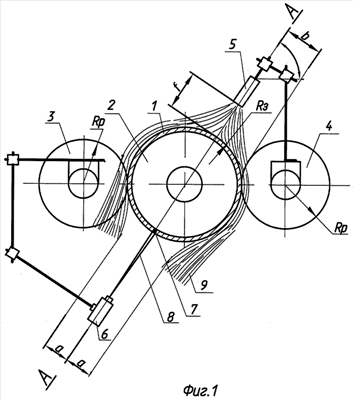 – на фиг.2 – процесс ротационной вытяжки оболочек с нагревом – вид в плане;