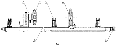 Показанный на фиг.1 ключ включает раму 1, гидравлический неподвижный зажим 2 с полноповоротным вращающимся патроном 3, гидравлический подвижный зажим 4, три поддерживающих опоры 5 и привод перемещения 6 гидравлического подвижного зажима 4.