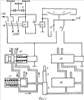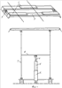 На фиг.1 изображен токоприемник и его отдельные узлы, на фиг.2 – позиции токоприемника, соответствующие режимам работы троллейбуса, а на фиг.3 приведена принципиальная схема управления токоприемником. Токоприемник /ТП/ состоит из диэлектрических планок 2 каркаса с установленными на них тремя токосъемными элементами 1, причем два из них помещены на концах планок и электрически изолированы друг от друга, а третий помещен в средней части планок и смещен по продольной оси троллейбуса относительно первых двух элементов, с каждым из которых он электрически соединен через полупроводниковый вентиль 9 /фиг.3/ Все токосъемные элементы с помощью кабеля подключены к входным клеммам линейного контактора 11. В крайних точках каркаса по габаритной ширине машины установлены конечные включатели 3 с электрически изолированными нажимными элементами. Каркас шарнирно соединен со штангами 7, которые также шарнирно установлены на основании, закрепленному на крыше троллейбуса через изоляторы. Между штангами помещен двухштоковый телескопический пневмоцилиндр 6, верхний шток 4 которого с помощью шарнира прикреплен к поперечине 8 штанг. Величина хода верхнего штока составляет 25-30% от величины хода нижнего штока 5. К рабочим полостям пневмоцилиндра подводится сжатый воздух из общей пневмосистемы троллейбуса. В воздушную магистраль каждой пневмополости включены регуляторы давления воздуха 17 и 18, состоящие из золотника, нагруженного пружиной с регулируемым затягом. Система управления /фиг.3/ содержит пульт управления с переключателями 13 и 14, реле 12 выключения линейного контактора 11 с дополнительными контактами 10, конечные включатели 3 и клапана 15 и 16 управления подачей воздуха в пневмополости. Система управления получает электропитание от источников тока напряжением 24 В /аккумулятора и генератора/. Клапана управления подачей воздуха установлены в магистрали подвода сжатого воздуха перед регуляторами давления 17 и 18, электромагниты привода клапанов подключены к источникам электропитания через трехпозиционный переключатель 13 и выключатель 14. Главные контакты линейного контактора механически связаны с дополнительными контактами 10, которые помещены в цепь питания электромагнита привода клапана управления подачей воздуха в верхнюю пневмополость. Электромагнит включения линейного контактора получает питание от контактной сети через контакты реле 12, обмотка которого подключена к цепи электропитания низкого напряжения через контакты трехпозиционного переключателя, а также и конечные включатели. Исходя из габаритной ширины троллейбуса, длина токосъемного элемента равна 800-850 мм, соответственно расстояние между разнополярными проводами контактной сети устанавливают в 950-1000 мм. Переходные участки контактных линий других направлений движения /маршрутов/ не имеют в своем составе стрелочных узлов, провода сети таких участков монтируют в непосредственной близости от линии первоначального направления с выходом на линию другого направления без использования кривых держателей. Места пересечений контактных линий также не имеют спецчастей, их выполняют с простыми разрывами контактных проводов одной из линий. Из эксплутационной практики известно, что прямолинейное движение троллейбусов на городских улицах с однорядным /в одном направлении/ 