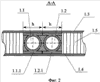 – встроенные в панель 1 (например, в раскрываемую панель радиатора с двухсторонним излучением избыточного тепла) два независимых тракта теплоносителя – выполненные из одинаковых профильных трубопроводов 1.1 и 1.2 (1.1.1 и 1.2.1 полки указанных трубопроводов; 1.1.2, 1.2.2 – входы в независимые тракты, 1.1.3, 1.2.3 – выходы из названных трактов);