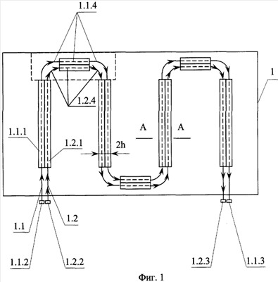 – U-образные переходники 1.1.4 и 1.2.4 между соседними параллельными трактами.