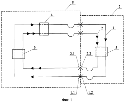 Поставленная цель достигается выполнением СТР таким образом, что выходной и входной гидроразъемы другого циркуляционного тракта соединены с вновь введенными дополнительными входным и выходным гидроразъемами блока, соединенными, в свою очередь, через переключатели с линиями, идущими к входному и выходному разъемам блока через вновь введенные переключатели, при этом входные участки выходного и дополнительного выходного гидроразъемов блока закольцованы через переключатели соответственно с участками входного и дополнительного входного гидроразъемов блока, что и является, по мнению авторов, существенными отличительными признаками предлагаемого авторами технического решения.