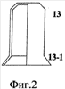 Следовательно, закупоривающая система 13 или клапан должна размещаться в седле, образованном между куполом 17, вторым трубчатым цилиндром 12-2 и сужающейся заслонкой 14 в виде усеченного конуса выливной части 12. Поэтому закупоривающая система 13 должна иметь любую форму, подходящую для введения под давлением в указанное седло, образованное в выливной части 12, через зазор в сужающейся заслонке 14 в виде усеченного конуса, так, что, когда закупоривающая система 13 введена в выливную часть 12, то сужающаяся заслонка 14 в виде усеченного конуса переворачивается в направлении внутреннего пространства выливной части 12 в опорное или закрытое положение, показанное на фиг. 3, которое предотвращает наливание жидкости в бутылку 11.