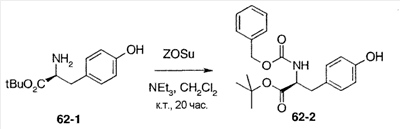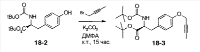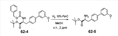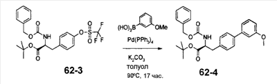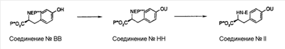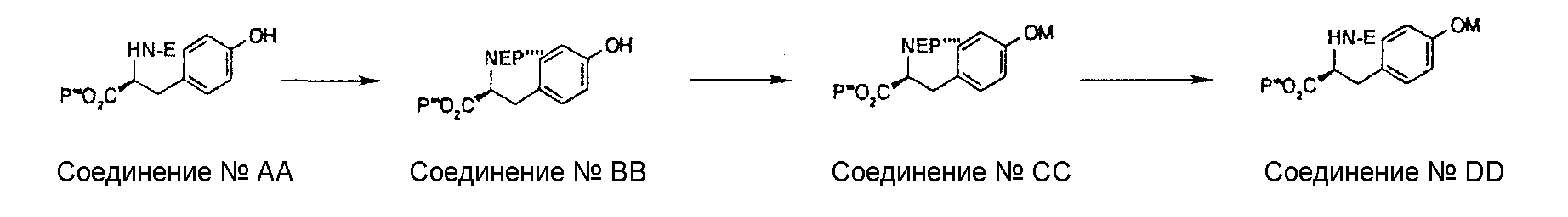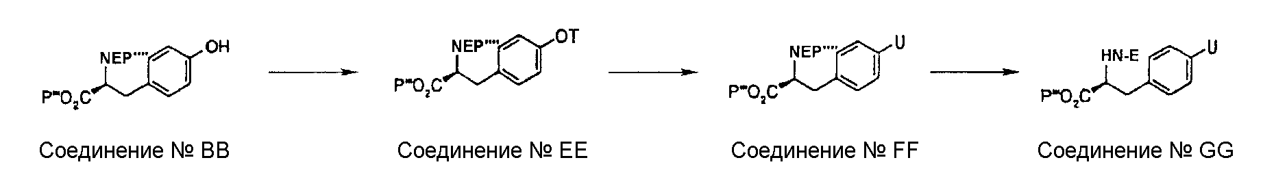 может быть синтезировано способом, известным специалисту в данной области, или одной из приведенных ниже схем реакций общего способа получения 3-5. Общий способ получения 3 В приведенных выше формулах Р”’ представляет собой защитную группу карбоксильной группы, Р”” представляет собой защитную группу аминогруппы и М представляет собой неразветвленную или разветвленную алкильную группу, неразветвленную или разветвленную алкинильную группу, неразветвленную или разветвленную алкенильную группу или циклоалкильную группу. Стадия 3-1 Соединение ВВ может быть получено защитой соединения АА защитной группой аминогруппы, такой как ацетил, трифторацетил, трет-бутоксикарбонил, бензилоксикарбонил и 9-флуоренилметилкарбонил. Условия реакции в это время подходящим образом выбирают в зависимости от типа защитной группы Р””. Стадия 3-2 Соединение СС может быть получено взаимодействием соединения ВВ с М, замещенным галогеном или уходящей группой, такой как метансульфонатный эфир и толуолсульфонатный эфир, при комнатной температуре или при нагревании, предпочтительно, при комнатной температуре в присутствии основания, такого как карбонат калия, гидроксид натрия и гидрид натрия, в растворителе, таком как диэтиловый эфир, толуол, циклогексан, ацетон, диметилформамид, диоксан, этилацетат и диметилсульфоксид или смесь таких растворителей. В альтернативном варианте соединение СС может быть получено взаимодействием соединения ВВ с М, замещенным гидроксильной группой, в условиях реакции Мицунобу. Стадия 3-3 Соединение DD может быть получено удалением защитной группы Р”” аминогруппы соединения СС. Условия реакции в это время подходящим образом выбирают в зависимости от типа защитной группой Р””. Общий способ получения 4 В вышеуказанных формулах Р”’ представляет собой защитную группу карбоксильной группы; Р”” представляет собой защитную группу аминогруппы; Т представляет собой уходящую группу, такую как сульфонатный эфир, и U представляет собой арильную группу, которая может быть замещенной, или гетероарильную группу, которая может быть замещенной. Стадия 4-1 Соединение ЕЕ может быть получено взаимодействием соединения ВВ с хлорангидридом метансульфоновой кислоты, хлорангидридом толуолсульфоновой кислоты или ангидридом трифторметансульфоновой кислоты при комнатной температуре или при охлаждении, предпочтительно, при охлаждении, в присутствии основания, такого как N,N-диизопропилэтиламин, триэтиламин, пиридин и 4-N,N-диметиламинопиридин, в растворителе, таком как диэтиловый эфир, толуол, циклогексан, ацетон, диметилформамид, диоксан, этилацетат и диметилсульфоксид или смесь таких растворителей. Стадия 4-2 Соединение FF может быть получено взаимодействием соединения ЕЕ с производным арил- или гетероарилбороновой кислоты или производным эфира арил- или гетероарилбороновой кислоты при комнатной температуре или при нагревании, предпочтительно, при нагревании в присутствии палладиевого катализатора, такого как палладийдиацетат и тетракистрифенилфосфинпалладий, в растворителе, таком как диэтиловый эфир, толуол, бензол, диметилформамид, диоксан, этилацетат, ацетонитрил и вода или смесь таких растворителей. Стадия 4-3 Соединение GG может быть получено удалением защитной группы Р”” аминогруппы соединения FF. Условия реакции 