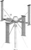 Последнее американское изобретение наиболее близко к настоящему по целям и способам их достижения и может являться прототипом для настоящего изобретения. Прототип представляет из себя одноярусную компоновку турбины с вертикальной осью вращения, в которой к центральному валу крепятся горизонтальные лопасти-обтекатели, по две на каждую основную лопасть, которые к ним крепятся. Недостатком прототипа является применение центрального вала, существенно снижающего коэффициент использования энергии ветра. Кроме того, одноярусная компоновка обладает малой способностью к самораскрутке ротора, что видно из графиков. Т.е. недостатком прототипа является недостаточное внимание к аэродинамической компоновке ротора, что не позволило авторам превзойти рубеж 30% по коэффициенту Ср, несмотря не применение достаточно эффективных профилей основных лопастей. В дополнение к вышесказанному прототип является дорогостоящей конструкцией вследствие специальной профилировки основных лопастей.
