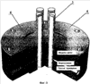 1. Устройство для оценки и контроля состава конденсированного раствора и отложений в конструкционных щелях с тепловым потоком, расположенных в трубопроводах питающей воды парогенераторов энергетических установок, таких как тепловые или атомные электростанции, характеризующееся тем, что содержит первый сосуд (1) высокого давления с теплоносителем, имеющим собственный регулируемый источник (2) тепла, и второй сосуд (3) высокого давления, соединенный впускной и выпускной трубами с трубопроводом питающей воды парогенератора, где между первым и вторым сосудами (1, 3) высокого давления плотно вставлен съемный элемент (4), через тело которого проходит, по меньшей мере, одна плотно вставленная теплопередающая труба (5), где вдоль части ее длины со стороны, примыкающей ко второму сосуду (3) высокого давления, между ее наружной стенкой и телом съемного элемента образована модель (6) конструкционной щели, причем один конец теплопередающей трубы соединен с внутренним пространством первого сосуда (1) высокого давления, а другой, противоположный, закрытый конец теплопередающей трубы (5) заходит во внутреннее пространство второго сосуда (3) высокого давления, так что во время работы устройства этот другой конец покрыт питающей водой из парогенератора.