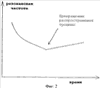 Фиг.2 – иллюстрация качественного перехода, когда отслеживаемая резонансная частота колебаний заполненной жидкостью трещины прекращает уменьшаться со временем и начинает расти.