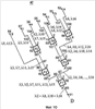 В примере 24 оптический сигнал, поступающий на вход X с левой стороны, содержит 16 составляющих с длинами волн 1- 16. Сигнал, снимаемый с выхода W фильтра, также содержит 16 составляющих с теми же длинами волн *1- *16. Знаки “*” показывают, что сигналы поступили на входы фильтра F1 с правой стороны. На входе-выходе Y сигналы с длинами волн 1, 3, 5, …, 15 распространяются вправо, а сигналы с длинами волн *2, *4, *6, …, *16 – влево. На входе-выходе Z сигналы с длинами волн 2, 4, 6, …, 16 распространяются вправо, а сигналы с длинами волн *1, *3, *5, …, *15 – влево.