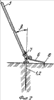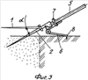 В предлагаемом процессе вскапывания земли копающий устанавливает инструмент перед собой таким образом, чтобы зуб основы 1 и зубья ряда 2 были в одной плоскости, т.е. как обычные вилы. Здесь зубья ряда 2, шарнирно соединенные с основой 1, двигаясь под собственным весом вниз до соприкосновения перемычки с основой 1, становятся в один ряд с зубом основы 1. Величина зазора между основой 1 и перемычкой зубьев ряда 2 подобрана таким образом, что позволяет вращаться зубьям ряда 2 относительно основы 1 в пределах угла . Для дополнительного усиления конструкции инструмента может быть предусмотрена и вторая перемычка, которая обозначена пунктиром (см. фиг.1). В исходном положении инструмента черенок находится на расстоянии вытянутой руки копающего, под углом к плоскости зубьев, которая располагается перпендикулярно земле (см. фиг.2). Копающий вдавливает ногой инструмент в землю, тянет черенок 5 на себя и вниз. В этот самый момент в земле начинает двигаться сначала зуб основы 1, который, сдвигая перед собой, рыхлит часть пласта земли, а затем, с отставанием на угол , начинает двигаться ряд зубьев 2, которые, сдвигая перед собой, рыхлят другие части пласта. Здесь происходит перераспределение нагрузок. В этот же момент V-образный пружинный упор 6 сжимается, фиксируя зубчатую пластину 8. Затем над взрыхленной землей появляется сначала зуб основы 1, а далее и зубья ряда 2. Появление и поднятие инструмента над землей происходит с ускорением за счет выталкивающей силы V-образного пружинного упора 6. В такой агротехнике рыхление почвы происходит без поднятия, переворота и разбивки пласта земли. Копающий прилагает незначительные усилия, да и детали инструмента меньше подвергаются нагрузкам. Сам инструмент и черенок меньше будут подвержены излому, а значит станут надежнее. Новый инструмент, «расчесывая» землю, не режет корни сорняков, не удваивает их, как лопата, снижает испарение влаги и эрозию почвы, не нарушая при этом ее живительную силу. Такой инструмент в полной мере воплощает в действие труды академика Т.С.Мальцева «Вскапывание почвы безотвальным методом – залог получения стабильных урожаев».