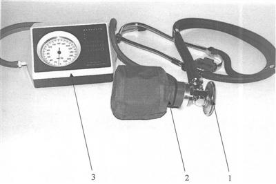 Измерение АД, как правило, производят по методу Короткова, используя устройство, состоящее из манжеты, груши для нагнетания воздуха в манжету, манометра для регистрации уровня давления и фонендоскопа, с помощью которого выслушивают тоны Короткова [«Инструментальные методы исследования сердечно-сосудистой системы (Справочник/Под ред. Т.С.Виноградовой.» – М.: Медицина, 1986. – 416 с. Стр.371].