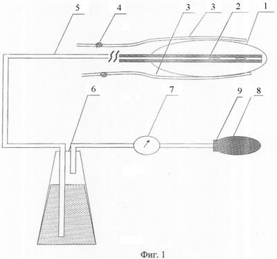 Технический результат заявляемого изобретения заключается в повышении точности и оперативности действия персонала за счет наличия нагнетательного устройства в виде помпы и контролирующего устройства давления – манометра при компактности всего оборудования в целом. Несколько минимальных движений обеспечивают экстренное наполнение баллона полностью и создают достаточное для гемостаза давление в то время, как в прототипе не всегда достижимо по ряду причин: