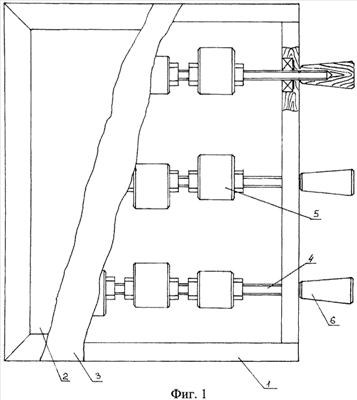 Корпус 1 выполнен в виде ящика, на который с лицевой стороны прикреплена наклеенная на ткань 3 эластичная светоотражающая пленка 2, а в корпусе расположены валы 4, на которые прочно насажены эксцентрики 5, концы валов выходят за пределы корпуса и снабжены ручками 6.