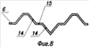 Углубления 12 и буртики 13, представляющие собой шестеренчатую пару, могут иметь самые разнообразные формы и габаритные размеры, и любые варианты их расположения, но при этом они обязательно должны обеспечивать выступам 14 некоторую высоту, которая в своем минимальном значении должна быть больше диаметра используемой проволоки. Оптимальным же представляется такой случай, когда высота выступа на витках пружины в несколько раз превышает диаметр используемой проволоки.