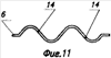 Механизм подачи пружины образован, соосно расположенными, ведущим 8 и ведомым 9 роликами и приводом, состоящим из электродвигателя 10 и источника 11 ультразвуковых колебаний. Ведущий 8 и ведомый ролики 9, имеющие цилиндрическую форму, выполнены (см. фиг.2) соответственно с продольными углублениями 12 и с продольными буртиками 13, которые при вращении роликов совмещаются между собой и формируют (см. Фиг.3) на витках пружины 7 выступы 14, отделенные один от другого радиусными участками 15. Углубления 12 и буртики 13 могут иметь самые разнообразные формы, габаритные размеры и любые варианты их расположения, но при этом они обязательно должны обеспечивать выступам 14 некоторую высоту, которая в своем минимальном значении должна быть больше диаметра используемой проволоки. Оптимальным же представляется такой случай, когда высота выступа в несколько раз превышает диаметр используемой проволоки.