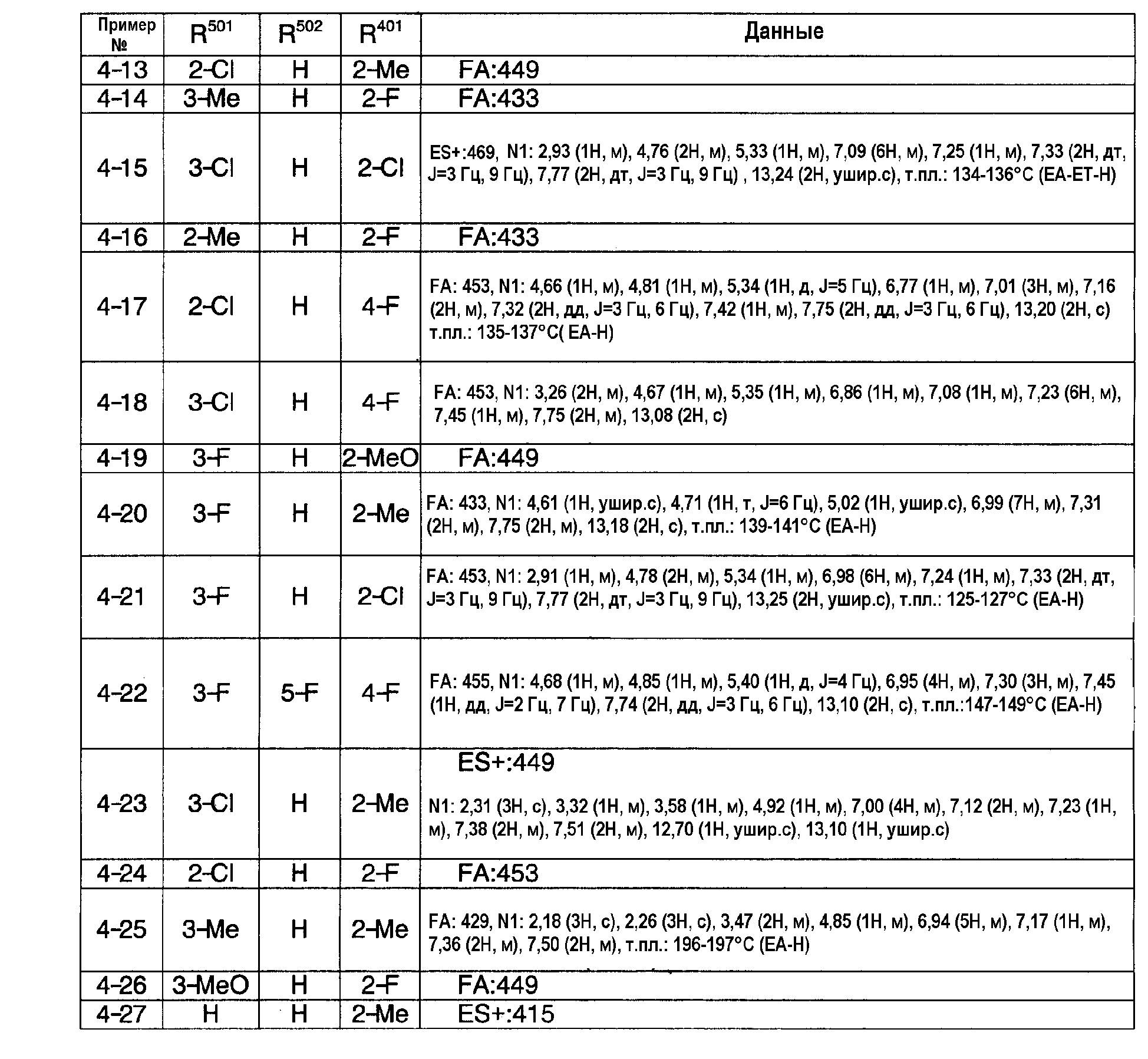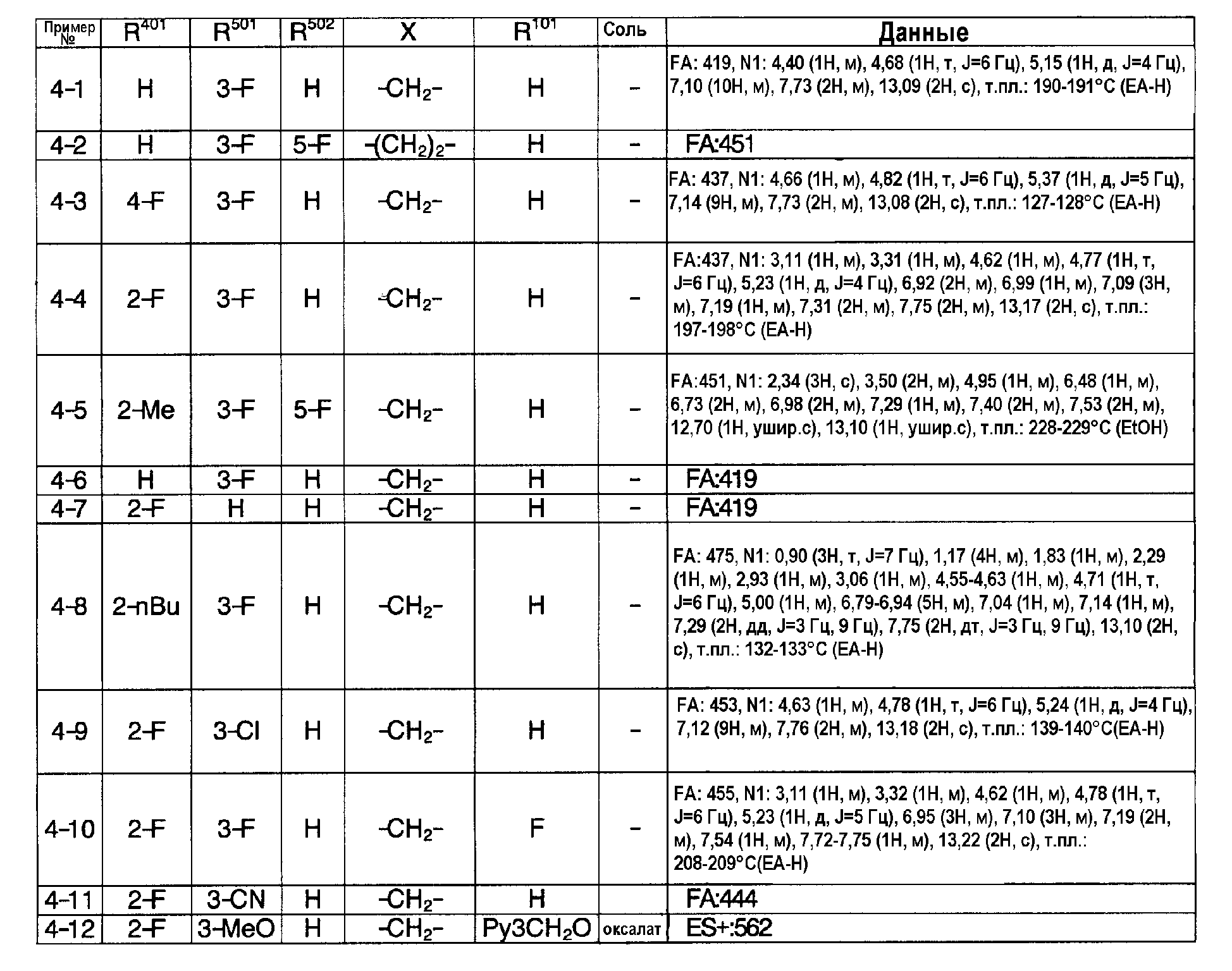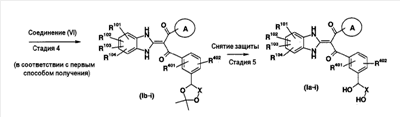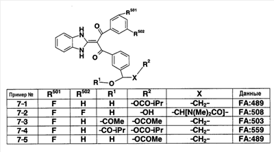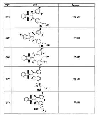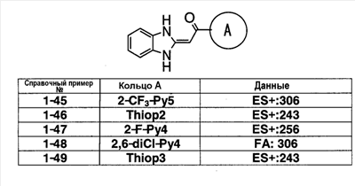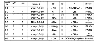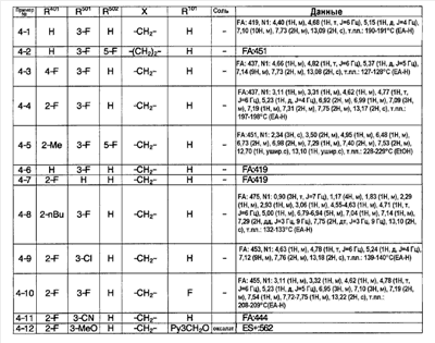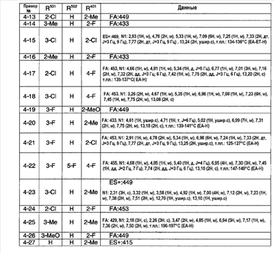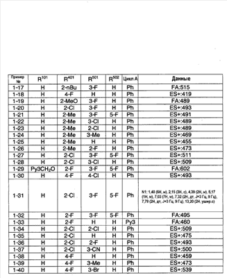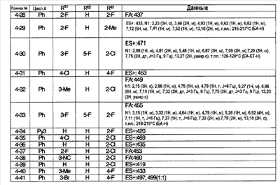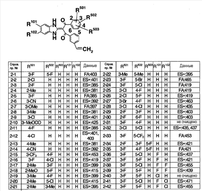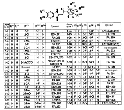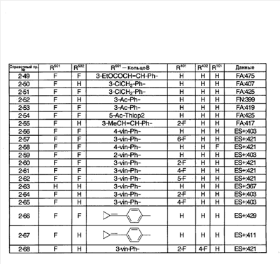 (2) Тест на ингибирование II (расчет ингибирующей активности II) С использованием 96-луночного планшета испытуемое соединение и микросомы печени человека (0,1 мг белка/мл) выдерживают при 37°С в течение 30 минут в 145 мкл суммарного объема 100 мМ фосфатного буфера (рН=7,4), содержащего 0,1 мМ EDTA и 1 мМ NADPH. Затем в качестве субстрата добавляют мидазолам и выдерживают при 37°С в течение 20 минут. После выдерживания реакцию останавливают добавлением водного раствора, содержащего 80% ацетонитрила. Затем каждый образец анализируют ВЭЖХ и рассчитывают ингибирующую активность II. Ингибирующая активность II (%)=100-Vi,II/V0,II/(100-ингибирующая активность I)·100·100; Vi.II: скорость метаболизма субстрата в присутствии испытуемого соединения известной концентрации в тесте на ингибирование II; V0.II: скорость метаболизма субстрата в отсутствие испытуемого соединения в тесте на ингибирование II. На основании полученных результатов сделан вывод, что соединения примеров 2-4, 4-1, 4-4, 4-5, 4-21, 4-22, 4-25, 4-29 и 4-30 оказывают слабый ингибирующий эффект в отношении CYP3A4 и что для указанных соединений существует небольшая опасность, что имеет место взаимодействие лекарство-лекарство с лекарственными средствами, для которых CYP3А4 вносит вклад в метаболизм в печени человека по сравнению с соединениями примера 40, примера 251 и примера 239, описанными в патентной ссылке 1. Пример испытания 5: Тест на метаболическую стабильность в микросомах печени человека С использованием пробирки испытуемое соединение и микросомы печени человека (0,2 мг белка/мл) выдерживают при 37°С в течение 15 минут в 100 мМ фосфатном буфере (рН=7,4), содержащем 0,1 мМ EDTA и 1 мМ NADPH. После выдерживания реакцию останавливают добавлением водного раствора, содержащего 80% ацетонитрила. Затем каждый образец анализируют с помощью ВЭЖХ и рассчитывают клиренс in vitro с помощью интегрирующего графика. В результате этого испытания, например, соединения примеров 2-4, 4-1, 4-4, 4-5, 4-21, 4-22, 4-25, 4-29 и 4-30 показали прекрасную метаболическую стабильность в печени человека и сделан вывод, что на эти соединения меньше влияет эффект первого прохождения по сравнению с соединениями примеров 40, 251 и 239, описанных в патентной ссылке 1.