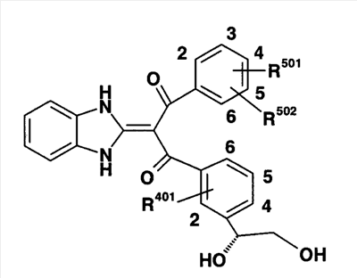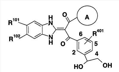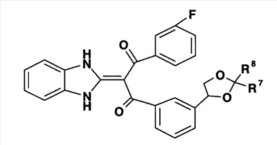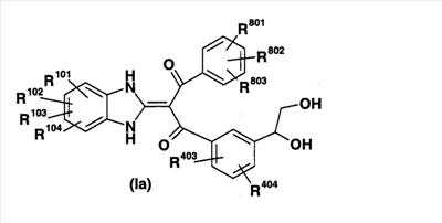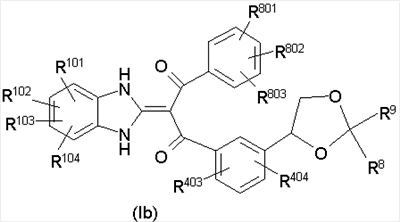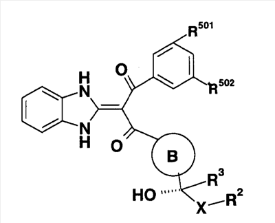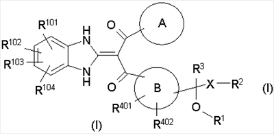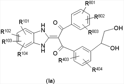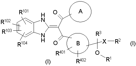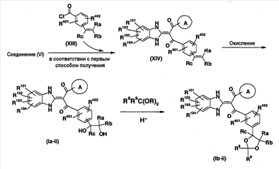 1. Производное пропан-1,3-диона, представленное общей формулой (I), или его фармацевтически приемлемая соль символы в формуле означают следующее: кольцо А: бензол, который может быть замещен, пиридин, который может быть замещен или тиофеновое кольцо; кольцо В: бензольное или тиофеновое кольцо; R1: Н или -СО-низший алкил; R2: Н, -O-R5, -N(R6)R7, -N3, -S(O)m-низший алкил, пиридил или имидазолил, которые могут быть замещены; R5: Н, низший алкил, -СО-низший алкил, который может быть замещен, или -СО-O-низший алкил, который может быть замещен; R6 и R7: могут быть одинаковыми или отличаются друг от друга и каждый из них представляет собой Н, низший алкил или -СО-низший алкил, при условии, что R1 и R2 вместе могут образовывать диоксолан, который может быть замещен; m: 0, 1 или 2; R3: Н или низший алкил; R401 и R402: могут быть одинаковыми или отличаются друг от друга и каждый из них представляет собой Н, атом галогена, -O-низший алкил или низший алкил; X: связь, низший алкилен, который может быть замещен, или циклоалкандиил; R101, R102, R103 и R104: могут быть одинаковыми или отличаются друг от друга и каждый из них представляет собой Н, атом галогена, ОН или -O-низший алкил, который может быть замещен гетероарилом. 2. Производное пропан-1,3-диона или его фармацевтически приемлемая соль по п.1, где кольцо А представляет собой бензольное кольцо, которое может быть замещено атомом галогена или низшим алкилом, кольцо В представляет собой бензольное кольцо, R1 представляет собой Н, R2 представляет собой ОН, R3 представляет собой Н и Х представляет собой низший алкилен, который может быть замещен. 3. Производное пропан-1,3-диона или его фармацевтически приемлемая соль по п.2, где Х представляет собой метилен, который может быть замещен. 4. Производное пропан-1,3-диона, представленное общей формулой (Ia), или его фармацевтически приемлемая соль символы в формуле имеют следующие значения: R801, R802 и R803: могут быть одинаковыми или отличаются друг от друга и каждый из них представляет собой атом водорода, атом галогена или низший алкил, и R403 и R404: могут быть одинаковыми или отличаются друг от друга и каждый из них представляет собой Н, атом галогена или низший алкил; и R101, R102, R103 и R104: могут быть одинаковыми или отличаются друг от друга и каждый из них представляет собой Н, атом галогена, ОН или -O-низший алкил, который может быть замещен гетероарилом. 5. Производное пропан-1,3-диона или его фармацевтически приемлемая соль по п.4, которые представляют собой, по меньшей мере, одно соединение, выбранное из группы, включающей 2-(1,3-дигидро-2Н-бензимидазол-2-илиден)-1-[3-(1,2-дигидроксиэтил)фенил]-3-(3,4,5-трифторфенил)пропан-1,3-дион; 1-{2-бутил-3-[(1R)-1,2-дигидроксиэтил]фенил}-2-(1,3-дигидро-2Н-бензимидазол-2-илиден)-3-(3-фторфенил)пропан-1,3-дион; 1-(3,5-дифторфенил)-2-(1,3-дигидро-2Н-бензимидазол-2-илиден)-3-[5-(1,2-дигидроксиэтил)-2-фторфенил]пропан-1,3-дион; 1-(3,5-дифторфенил)-2-(1,3-дигидро-2Н-бензимидазол-2-илиден)-3-{3-[(1R)-1,2-дигидроксиэтил]-2-метилфенил}пропан-1,3-дион; 2-(1,3-дигидро-2Н-бензимидазол-2-илиден)-1-{3-{(1R)-1,2-дигидроксиэтил]-2-метилфенил}-3-(2-фторфенил)пропан-1,3-дион; 2-(1,3-дигидро-2Н-бензимидазол-2-илиден)-1-[3-(1,2-дигидроксиэтил)фенил]-3-(2,3,5-трифторфенил)пропан-1,3-дион; 2-(1,3-дигидро-2Н-бензимидазол-2-илиден)-1-{3-[(1R)-1,2-дигидроксиэтил]-2-метилфенил}-3-(3-метилфенил)пропан-1,3-дион; 1-{2-хлор-3-[(1R)-1,2-дигидроксиэтил]фенил}-2-(1,3-дигидро-2Н-бензимидазол-2-илиден)-3-(3-фторфенил)пропан-1,3-дион); 2-(1,3-дигидро