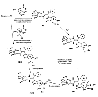 -бромкетон (XVIII), и указанное соединение (XVIII) может быть подвергнуто указанной выше реакции замещения Sn2-типа. Полученное таким образом замещенное соединение может быть превращено в соединение (I-i) восстановлением кетона по реакции восстановления, описанной ниже.