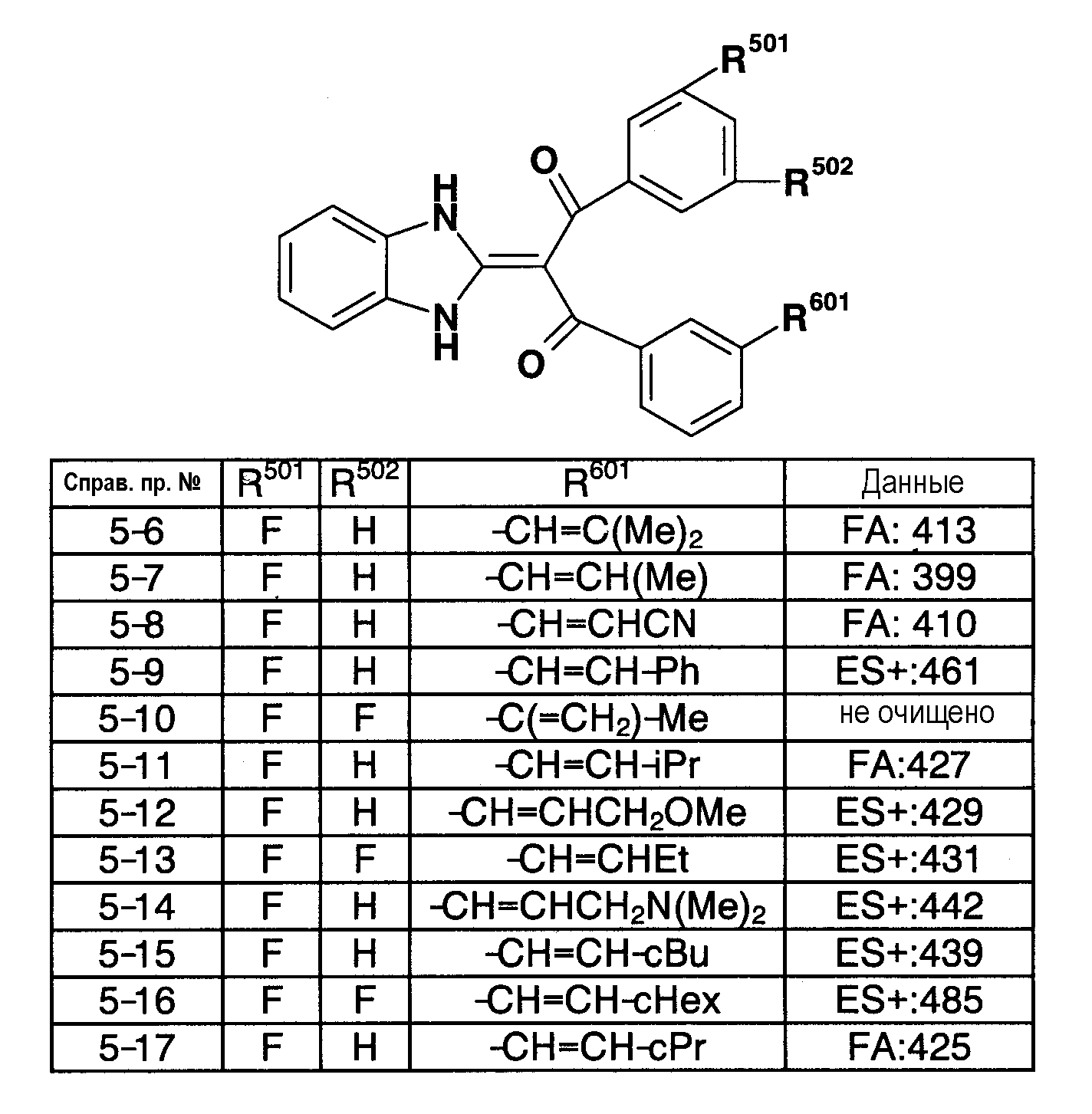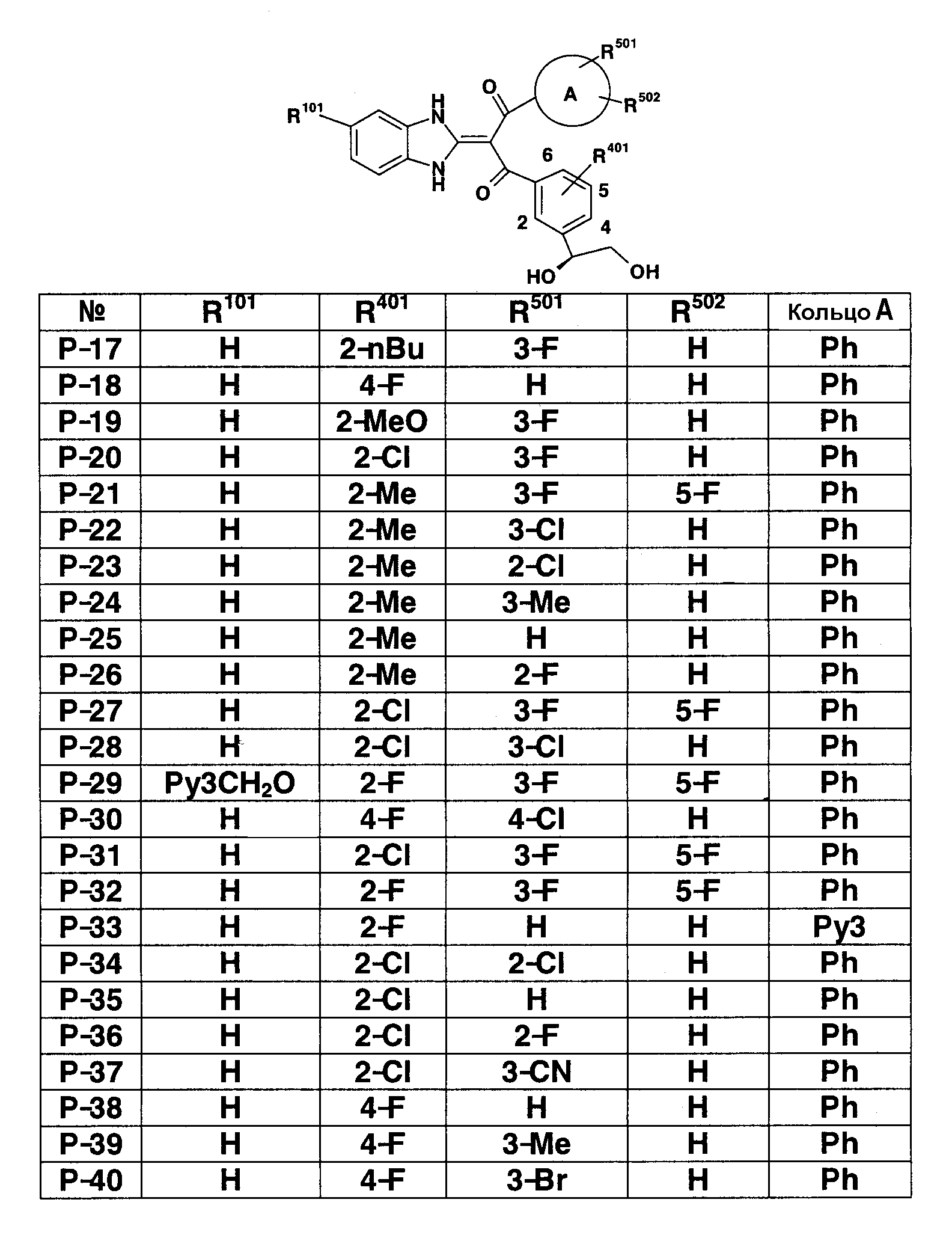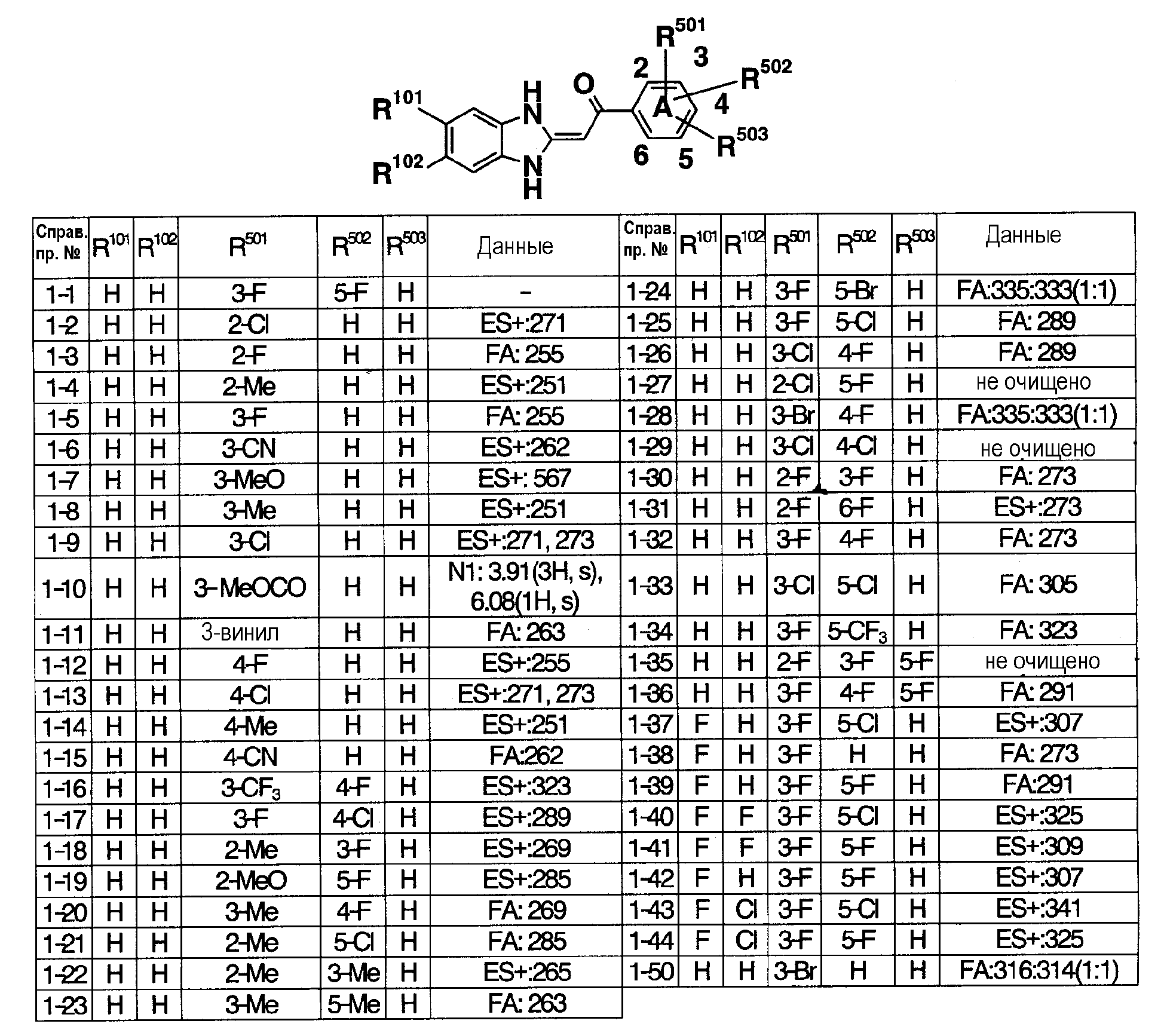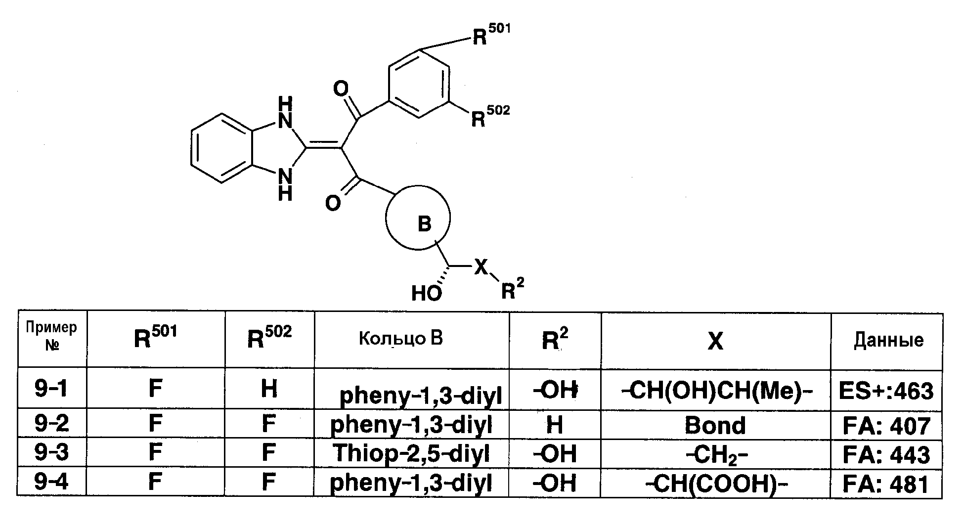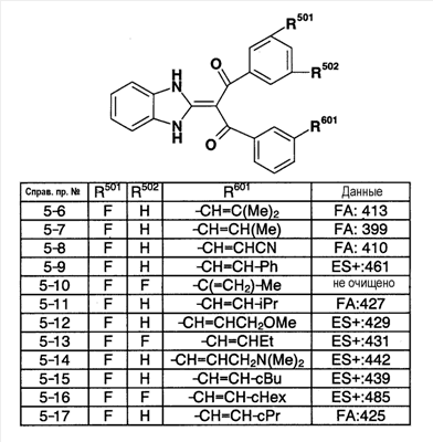 90:10). Полученное таким образом красновато-коричневое твердое вещество подвергают реакции солеобразования с 4 н. раствором HCl/EtOAc (0,2 мл), получая 151 мг (выход 42%) гидрохлорида 1-(1,3-дигидро-2Н-бензимидазол-2-илиден)-1-(3-фторфенил)-3-{3-[гидрокси(пиридин-2-ил)метил]фенил}пропан-1,3-диона (пример 11-1). FA: 466.