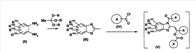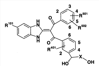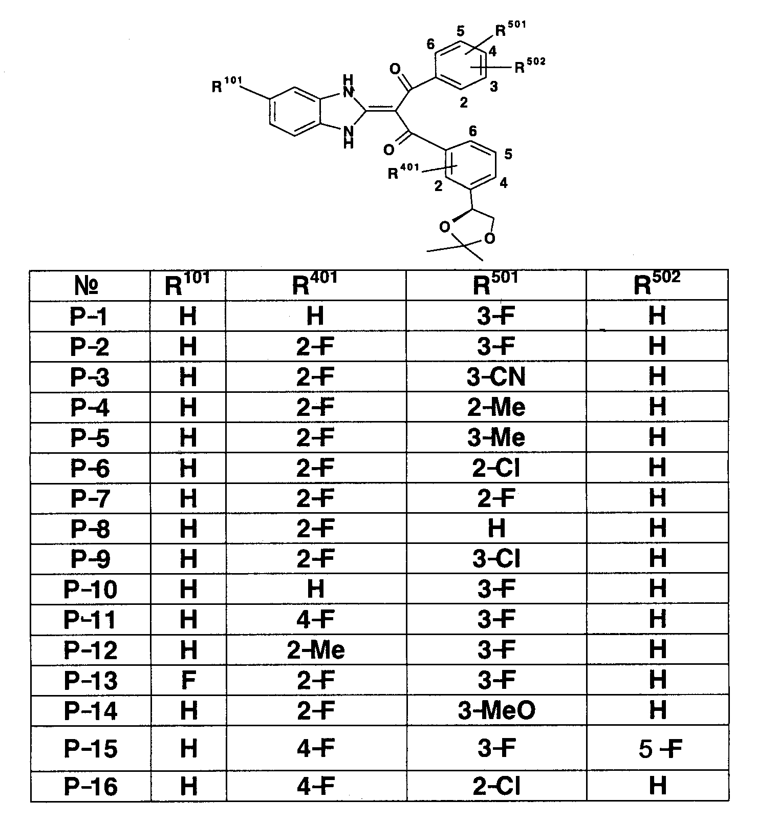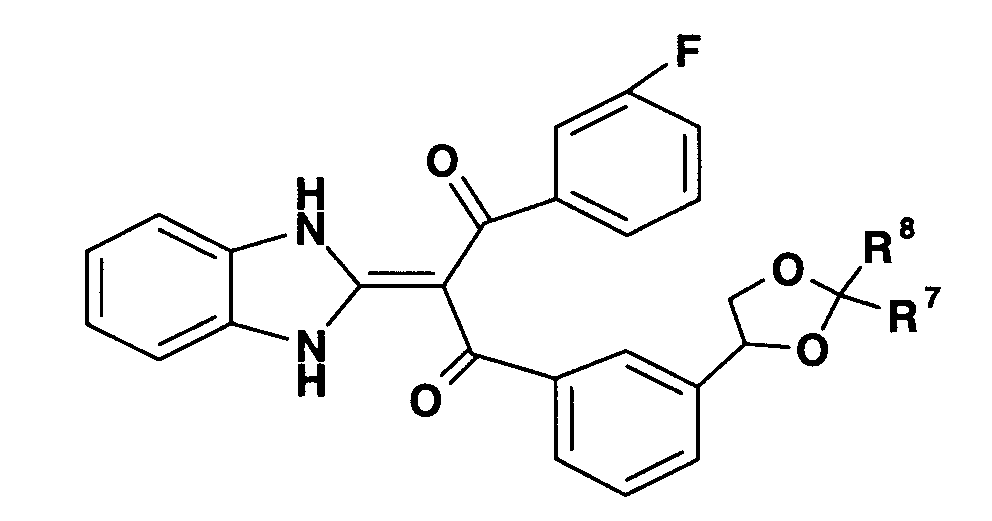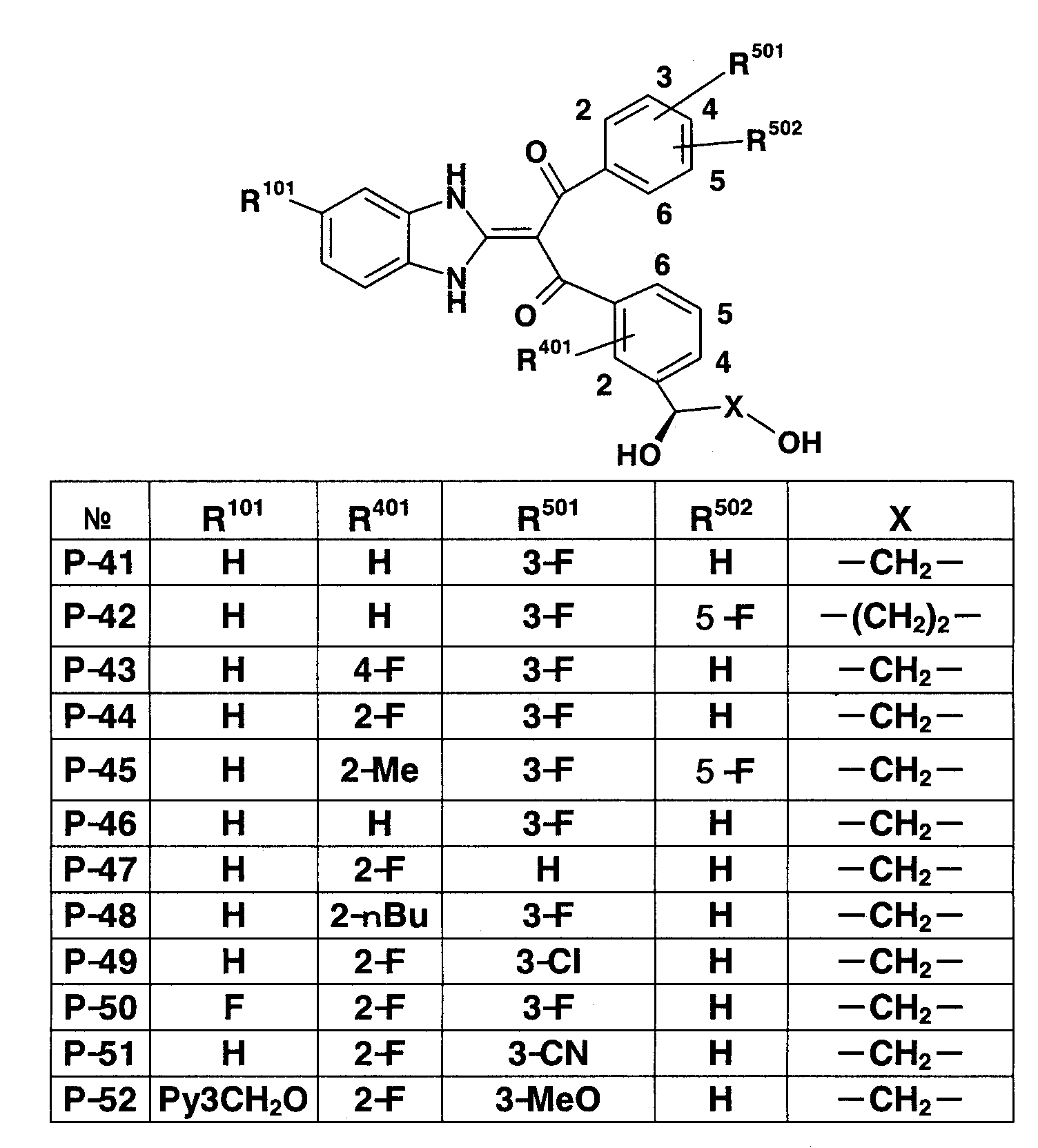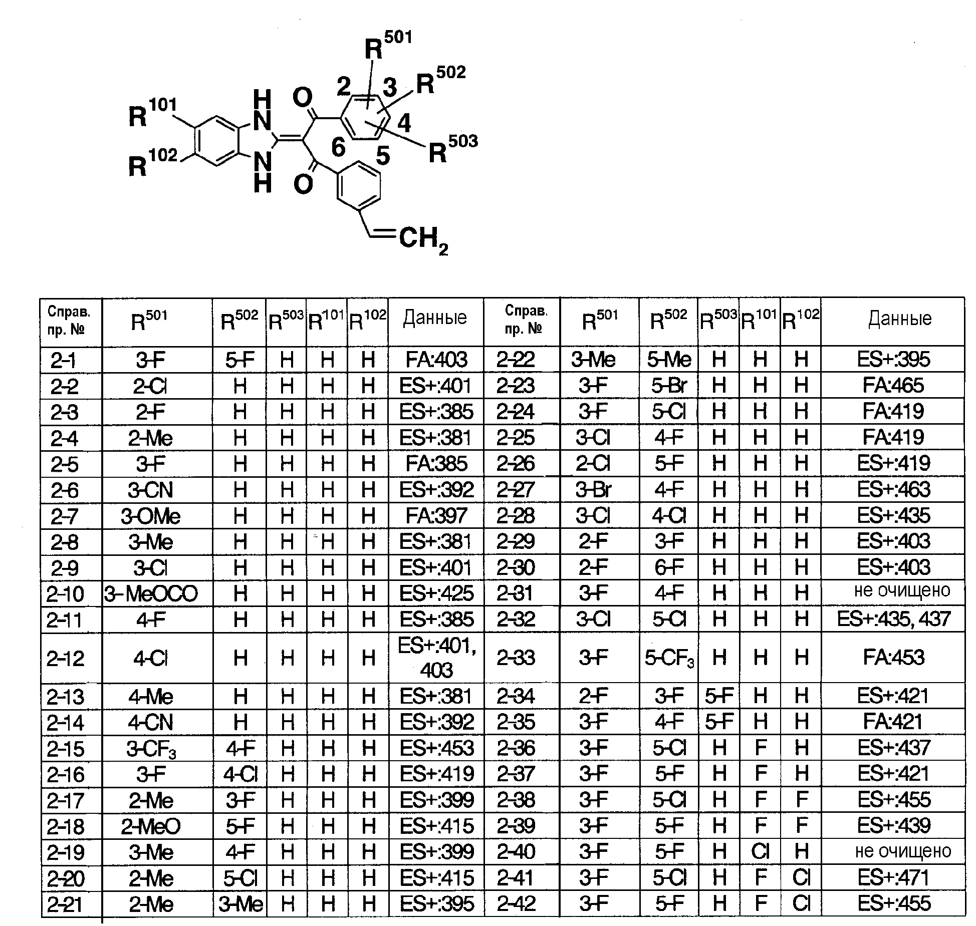 90:10). Полученное таким образом красновато-коричневое твердое вещество подвергают реакции солеобразования с 4 н. раствором HCl/EtOAc (0,2 мл), получая 151 мг (выход 42%) гидрохлорида 1-(1,3-дигидро-2Н-бензимидазол-2-илиден)-1-(3-фторфенил)-3-{3-[гидрокси(пиридин-2-ил)метил]фенил}пропан-1,3-диона (пример 11-1). FA: 466.
