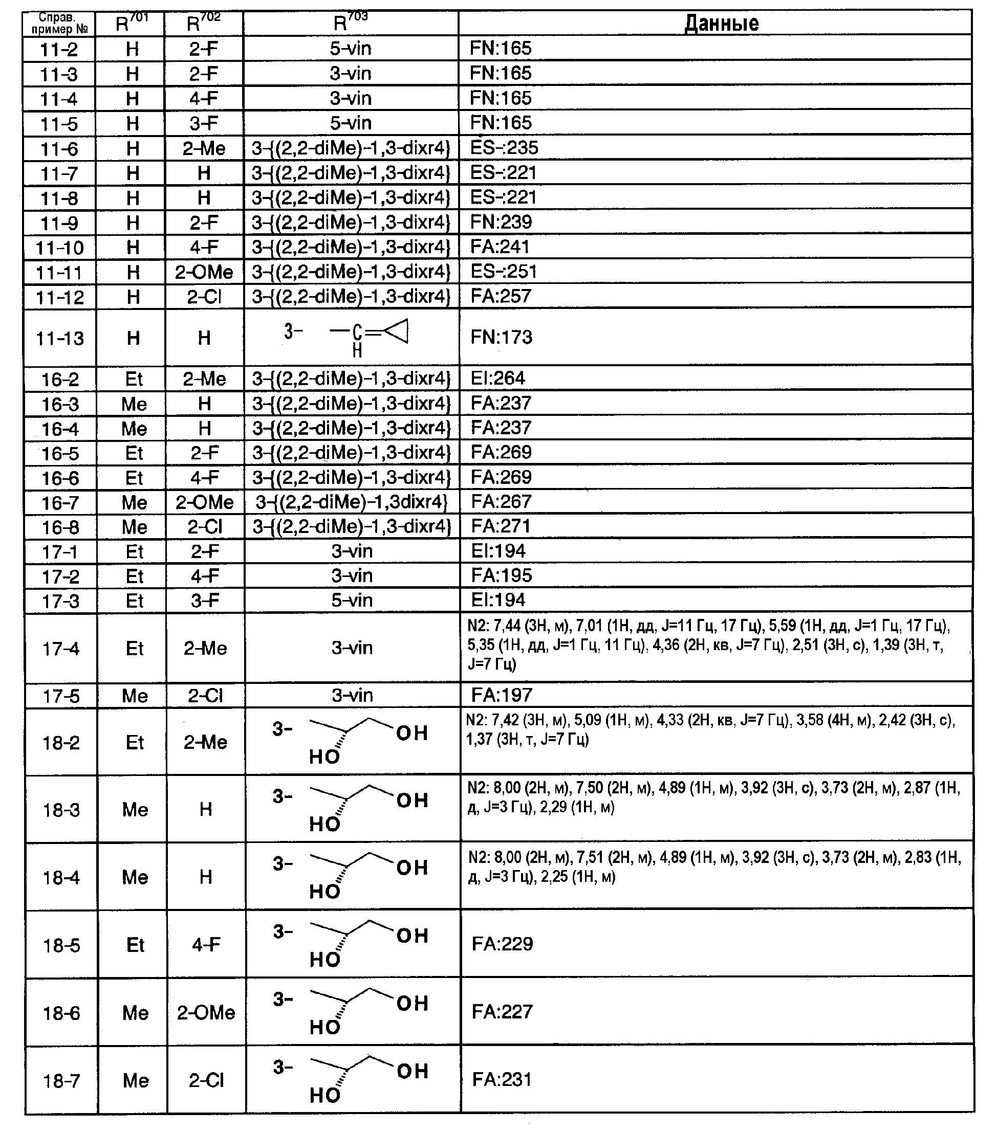 добавляют к смешанному растворителю из 265 мл трет-бутанола и 265 мл очищенной воды и растворяют при комнатной температуре в течение 30 минут. После охлаждения до 0°С раствор смешивают с 10,3 г этил 2-фтор-3-винилбензоата и перемешивают 3,5 часа. Реакционную смесь смешивают с 79,6 г сульфата натрия, перемешивают при комнатной температуре 30 минут и затем экстрагируют этилацетатом. Органический слой промывают насыщенным рассолом, сушат над сульфатом натрия и концентрируют, затем полученный в результате остаток очищают колоночной хроматографией на силикагеле (гексан:этилацетат=1:2), получая 5,71 г (выход 47%) этил 3-[(1R)-1,2-дигидроксиэтил]-2-фторбензоата (справочный пример 18-1). FA: 229.