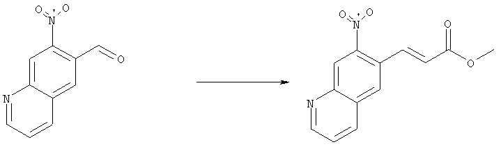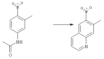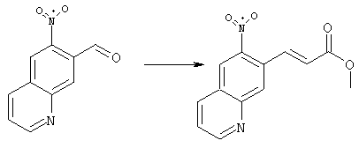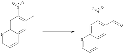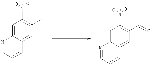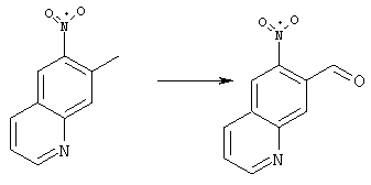 4-Ацетамидо-2-метилнитробензол (4,5 г, 23,2 ммоля), глицерин (9 г, 100 ммолей), конц. Н2SO4 (6,75 г) и As2O5·H2O (3,6 г, 46,4 ммоля) нагревали при 130°С в течение 20 ч. Полученную реакционную смесь выливали в воду, подкисляли добавлением конц. NH3 до рН 7-8 и три раза экстрагировали EtOAc. Объединенные органические фазы сушили над Na2SO4, упаривали и очищали хроматографией (SiO2, элюент: ТВМЕ/гексан, 70:30), при этом получали указанное в заголовке соединение (1,5 г, 34%). При этом сначала элюируется указанное в заголовке соединение, а затем изомер 5-метил-6-нитрохинолин (850 мг,19%). 1H ЯМР (400 МГц, ДМСО-d6): 2,64 (s, 3Н), 7,65 (dd, 1Н), 8,10 (s, 1Н), 8,58 (d, 1Н), 8,79 (s, 1Н), 9,05 (ушир.d, 1Н). Соотношение региоизомеров согласуется с данными спектров ROESY. MC (EI) m/z: 188 (М+, 40), 171 (100), 141 (40), 116 (60). б) 6-Нитрохинолин-7-карбальдегид