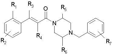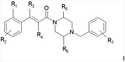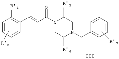 (54) ПРОИЗВОДНЫЕ 1-(4-БЕНЗИЛПИПЕРАЗИН-1-ИЛ)-3-ФЕНИЛПРОПЕНОНА И ИХ ПРИМЕНЕНИЕ, ФАРМАЦЕВТИЧЕСКАЯ КОМПОЗИЦИЯ И СПОСОБ ИНГИБИРОВАНИЯ РЕЦЕПТОРОВ ХЕМОКИНА (CCR-1)