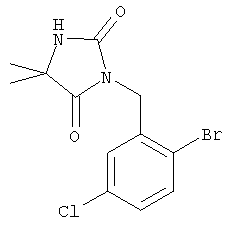 1H-ЯМР (400 МГц, ДМСО-d6): 1,88 (s, 3Н), 2,01 (s, 3Н), 4,73 (s, 2H), 7,28 (dd, 1H), 7,44 (d, 1H), 7,62 (d, 1H), 10,0 (ушир. s, 1H). MC (ESI+) m/z: 353 [M+Na]+. б) 3-(5-Хлор-2-{(Е)-3-[(R)-4-(4-фторбензил)-2-метилпиперазин-1-ил]-3-оксопропенил}бензил)-5,5-диметилимидазолидин-2,4-дион 1H-ЯМР (400 МГц, ДМСО-d6): 1,24 (ушир. s, 3Н), 1,30 (s, 6H), 1,87-2,16 (m, 2H), 2,64 (d, 1H), 2,81 (d, 1H), 2,88-3,06 (m, 1H), 3,35-3,56 (m, 2H), 3,95-4,55 (m, 2H), 4,62 (s, 2H), 7,06-7,18 (m, 4H), 7,35 (d, 1H), 7,37 (dd, 2H), 7,70-7,82 (m, 2H), 8,41 (s, 1H). MC (ESI+) m/z: 513 [M+H]+, 535 [M+Na]+. Пример 75 3-(5-Хлор-2-{(Е)-3-[(R)-4-(4-фторбензил)-2-метилпиперазин-1-ил]-3-оксопропенил}бензил)-1-метилимидазолидин-2,4-дион а) 3-(2-Бром-5-хлорбензил)-1-метилимидазолидин-2,4-дион