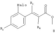 с соединением формулы PPh3CR4CO2СН3, например, в инертном растворителе, таком как толуол, и предпочтительно при повышенной температуре, например, при кипячении с обратным холодильником, при этом получают соединение формулы 8