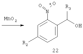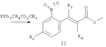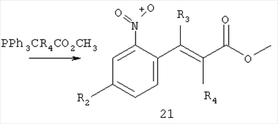 с реагентом РР3CR4СО2СН3 в инертном растворителе, таком как толуол, предпочтительно при повышенной температуре, например, при кипячении с обратным холодильником. Соединение формулы 22 получают при окислении соединения формулы 23