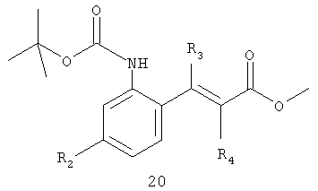 например, в присутствии катализатора, например, ацетата палладия, и основания, такого как триэтиламин, и предпочтительно в инертном растворителе, таком как ДМФА. Г. Способ, в котором соединение формулы I получают конденсацией соединения формулы 19